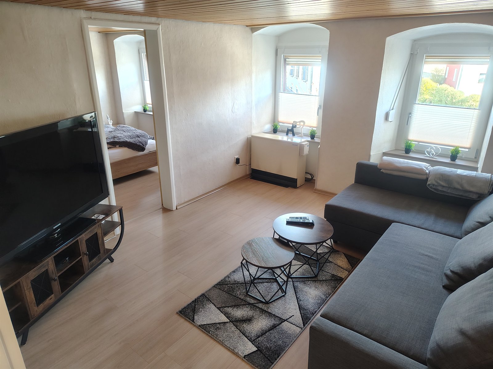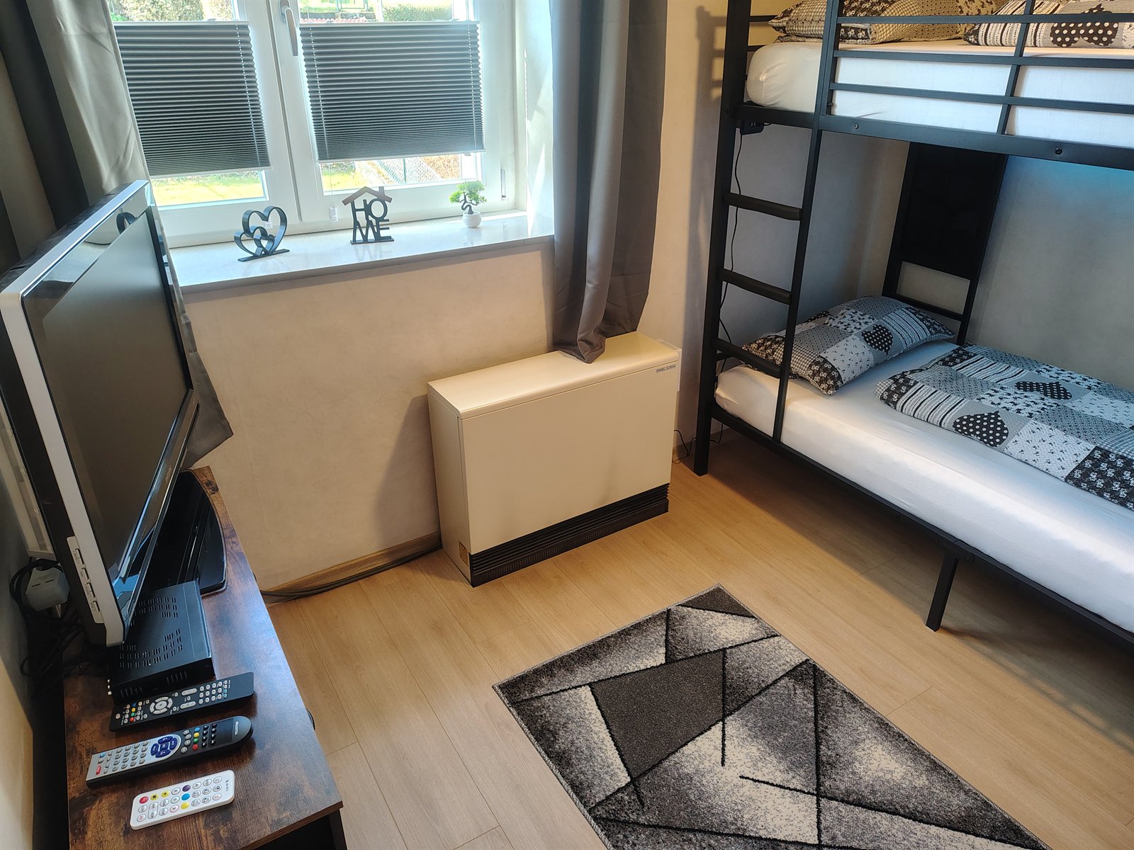 Wohnzimmer, Schlafzimmer, Kinderzimmer und das zweite Wohnzimmer im Obergeschoss sind jeweils mit einem Fernseher uns SAT TV ausgestattet. An jedem Fernseher ist zusätzlich jeweils ein einfach zugänglicher HDMI und USB Anschluß verfügbar, an dem Sie gerne Ihre TV Sticks, Spielekonsole oder ähnliches anschließen können.